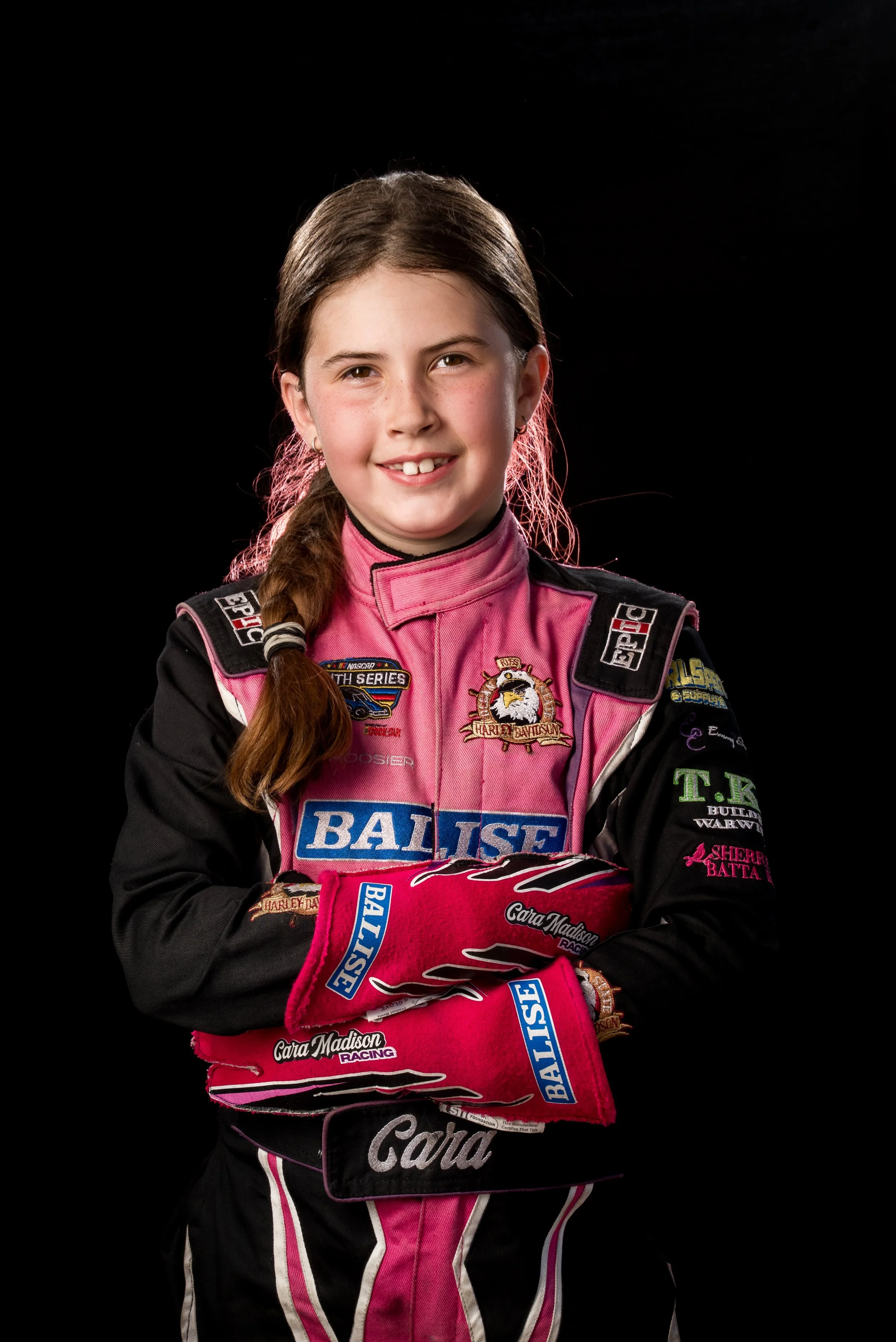Now 8 years old, Cara competes across Jr Honda, Jr Animal, and Jr 160 classes in local, regional, and national series. Her competitive results and growing visibility provide meaningful exposure for partners both at the track and online.